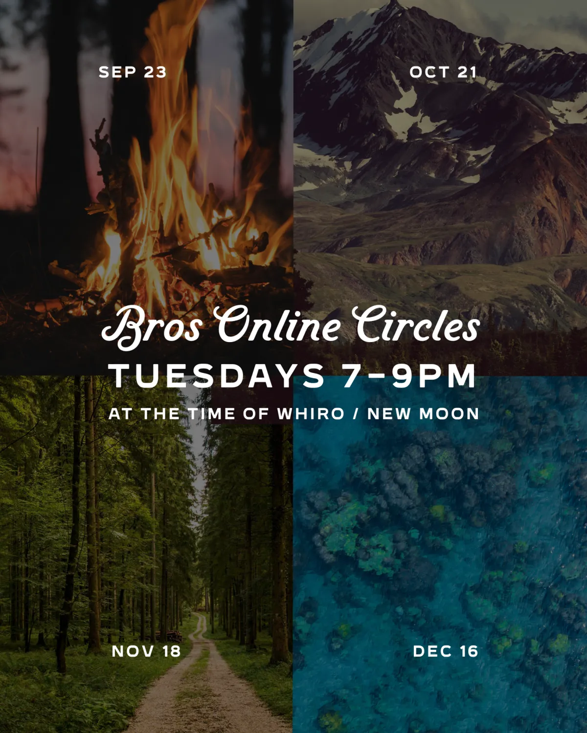 Join BROS for our 120 minute online circle experience - a space for men to connect & share, including tools, practices and discussion prompts to formulate true connection with brothers who are walking the path.